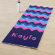 Una estera monogramada de yoga con un diseño de patrones vivos y coloridos de chevrones azules y rosas. Cree el regalo personalizado perfecto haciendo clic en el botón "personalizado" para agregar un nombre o mensaje de personalizado en el campo de plantilla proporcionado. Seleccione el vínculo "hacer clic en más personalizar" para cambiar el tipo de letra, el tamaño del texto y más.