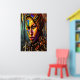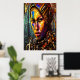 Una joven guerrera ciberpunk con ojos amarillos y pintura colorida en su cara. Este es un arte generado por IA.