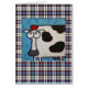 vaca con el tomate en la cabeza en tarjeta de la tela escocesa