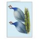 Las guineas de pizarra no muestran puntos de polka en absoluto sobre sus plumas, siendo un gris azulado suave, oscureciendo hacia el cuello y la cabeza.