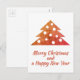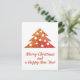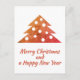 Guión Árbol de Navidad Festivo y Sencillo Feliz Navidad y Feliz Año Nuevo Tarjeta Postal de Vacaciones. Los colores son rojo festivo, naranja y dorado.