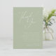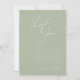 Presentamos nuestro impresionante guión caprichoso | sage green 5"x7", tarjeta de agradecimiento perfecta para su sencilla y moderna celebración de la primavera de boho. Nuestro elegante diseño incluye una vibrante paleta de colores pastel y luminosa con un guión de caligrafía de moda vintage. Ya sea que prefiera un estilo minimalista o clásico, nuestro exclusivo producto editable ofrece lujo y elegancia, perfecto para crear un toque elegante y romántico, seguro que hará que su día especial sea inolvidable. Contáctenos con cualquier pregunta sobre el diseño, y le ayudaremos a hacer el boda de sus sueños.