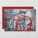 Tarjeta fotográfica de vacaciones moderna y caprichosa con tipografía con letras a mano y fondo de nieve rojo y blanco. Esto es parte de una colección de vacaciones, "Blessed Whimsical Script". Los elementos coincidentes y otros colores están disponibles. ¡Felices Fiestas!