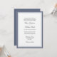 Invitación nupcial clásica con los padres de la novia nombrados en la presentación como anfitriona. Guión tradicional elegante y texto gris oscuro en un borde doble azul. Respaldo azul. Para ajustar el diseño, haga clic en Personalizarlo, Editar texto y, a continuación, haga clic y arrastre las secciones de texto a las ubicaciones deseadas. Utilice Ctrl para seleccionar y mover varias secciones a la vez.