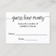 Juega este juego fácil en tu fiesta. Llena un frasco con caramelos o cacahuetes y los invitados adivinen cuántos están en el contenedor. Par con el signo del juego de adivinanzas para una gran exhibición en tu evento. Utilice el formulario de plantilla para agregar su información.