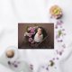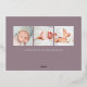 Las elegantes tarjetas de anuncio de nacimiento presentan una foto horizontal o horizontal con un toque de color con "bienvenida" colocada en letras de guiones de Relieve metalizado de oro rosa. Personalice con el nombre del bebé y las estadísticas de nacimiento debajo, y agregue tres fotos adicionales a la parte posterior, junto con un mensaje personal.