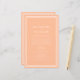Elegante programa de ceremonia de boda en durazno y blanco minimalista que presenta un diseño moderno simple con un borde doble enmarcado en blanco crujiente sobre un fondo durazno. La redacción tradicional y clásica proporciona una sofisticación atemporal. Personalice los detalles de la ceremonia de boda para sus invitados en letras y escritura de caligrafía blanca de moda. La parte trasera de la tarjeta coincide con blanco sobre durazno y trata sobre su grupo de boda. Para obtener resultados óptimos, reemplace los detalles del modelo con sus propios detalles dejando espacio entre párrafos como en el ejemplo. Capitalice y use minúsculas donde se especifique. No dude en ponerse en contacto conmigo en invitationsuites@gmail.com o con la función de mensaje si tiene preguntas sobre este o cualquiera de nuestros productos o tiene una solicitud de color personalizado.