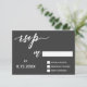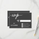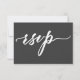En blanco, "rsvp" se representó en un guión moderno e informal con letras a mano y se colocó sobre un fondo gris oscuro. Minimalista, limpio y altamente editable. Utilice los campos de plantilla para agregar su texto preferido y su fecha grande. Se ha colocado una versión más grande del gráfico "rsvp" a lo largo de la parte posterior de la tarjeta. Las opciones de tarjeta RSVP en línea también están disponibles en este conjunto. Por favor, avíseme si necesita ayuda de personalización o tiene solicitudes especiales. // 9 //