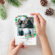 Moderna tarjeta fotográfica navideña de 3 fotos con Navidades acuarelas corona el ilustracion. Diseñado e ilustrado con amor por Kristine Lee Designs www.kristineleedesigns.com