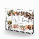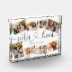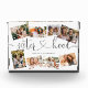 Un regalo especial e inolvidable para las hermanas. El diseño presenta un diseño de collage de ocho fotos para mostrar ocho de tus propias fotos de tu hermana especial. "Hermandad" está diseñada en un guión elegante de pincel negro y caligrafía de diseño cardíaco y personalizada con los nombres de las hermanas. Se agregan corazones blancos sobre las imágenes. **Nota Los corazones se pueden mover si es necesario** Envíe un regalo memorable y especial a usted y a su(s) hermana(s) que ambos apreciarán para siempre.