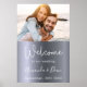 Este poster es perfecto para celebrar su día especial y desear la bienvenida a sus huéspedes. El poster tiene un elegante fondo de color negro falso plateado con un estilo de letra blanco moderno con letras a mano para los nombres. Personaliza y agrega tu propia foto.