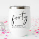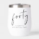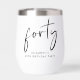 Elegante vaso de vino para tu fiesta de 40 años con "cuarenta" exhibidos en un guión de moda y tu nombre con letras sencillas y modernas.