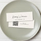 Elegante y de moda, tarjeta de visualización de zócalo y zócalo de color crema claro con un ambiente minimalista con tu nombre o marca exhibida en un guión elegante. En la parte posterior, introduzca una dirección URL para crear un código QR escaneado conectado a su sitio web, portafolio, perfil de medios sociales o cualquier otra plataforma que incluya sus diseños y productos, facilitando a los clientes la exploración de su marca y la conexión con usted.