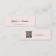 Elegante tarjeta de visualización de zócalo rosa claro y pendiente de aro con un ambiente minimalista con tu nombre o marca mostrada en un guión de moda. En la parte posterior, introduzca una dirección URL para crear un código QR escaneado conectado a su sitio web, portafolio, perfil de medios sociales u otra plataforma que incluya sus diseños y productos, facilitando a los clientes la exploración de su marca y la conexión con usted.