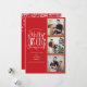 Un elegante diseño de vacaciones de colaje de 3 fotos Holly Jolly para que lo personalices con tus fotos favoritas en marcos dorados, mensaje, nombres y año. El reverso presenta copos de nieve que caen. Puedes personalizar el color de fondo para que coincida con tu tema de vacaciones favorito. Diseñado por Thisisnotme©