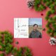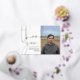 Compatía doblada gracias a tarjeta con un guión de oro, el nombre de tu ser querido y su foto con texto de Relieve metalizado dorado sobre un fondo blanco. Añadir un mensaje impreso dentro o borrar para escribir a mano.