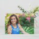 Este diseño presenta una invitación de graduados con un diseño minimalista moderno, perfecto para la escuela secundaria o la universidad, con un guión elegante, sencillo y a la moda, con un patrón de 2 fotos, clase de 2024, con tipografía de escritura caligráfica, una invitación elegante con detalles de la fiesta de graduación.