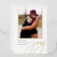 Una tarjeta de vacaciones moderna y elegante con una foto vertical o retrato acentuada con guarnecido de Relieve metalizado dorado. "Alegría" aparece debajo de la tipografía casual con letras de Relieve metalizado oro. Personalice con su saludo de vacaciones personalizado, su nombre de familia y el año. Una moda y una moderna elección minialista para sus tarjetas Navidades 2022.