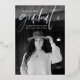 Tarjeta moderna de invitación de graduación con la foto favorita de tu graduado en la parte delantera con "Graduado" en un guión de Relieve metalizado de plata escrito a mano. Personalice el frente de la invitación agregando el nombre del graduado, el nombre de la escuela y el año de graduación. La invitación de graduación de moda se revierte para mostrar otras 3 fotos con espacio para texto como planes futuros, detalles de graduación, detalles de fiestas, etc. La invitación de 4 foto graduadas es perfecta tanto para graduados de secundaria como universitarios.