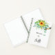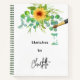 Un fondo blanco. Decorada con girasoles, vegetación eucaliptus y pincel. Personalice y agregue un título y un nombre. Letras de color negro. El nombre está escrito con un guión moderno de estilo de firma con letras a mano. Un cuaderno para dibujos, bocetos, notas y deberes escolares.