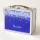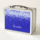 Un fondo azul real de moda, decorado con finos destellos purpurinas. Personalice y añada un nombre escrito con un estilo de escritura moderno y elegante.