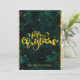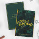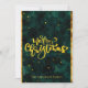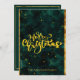 Tarjeta navideña elegante con guion verde y dorada. Efecto digital Vintage y Faux Gold. Puede personalizar el texto en la parte posterior.