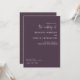 Elegante escritura con letras combinadas con tipografías modernas limpias sobre un fondo morado oscuro. Jugo de uva, negro, púrpura, melocotón, azul de piedra. Exquisito, relajante y sólo bonito. Esta combinación de colores única habla de elegancia clásica y de los días de invierno. El púrpura es un color moderno de tendencia que combina con gusto pastas suaves o tonos oscuros y sombríos. Este suntuoso combo es sin duda uno de los favoritos del invierno: tonos oscuros y vigorizantes juegan bien con casi cualquier estilo de evento. ¡No hay duda de la elegancia que emana de este combinado de color púrpura bonito! Agregue la redacción de su personalizado a este diseño utilizando los cuadros "Editar esta plantilla de diseño" situados en la parte derecha del elemento, o haga clic en el botón azul "Personalizar" para organizar el texto, cambiar los tipos de letra y los colores y añadir información o imágenes adicionales a este diseño. Haga clic en "Personalizar adicional" para abrir opciones completas de edición. Si necesita algún elemento de coordinación, (gracias a las tarjetas, etc.) por favor contáctame para un pedido de personalizado. **** Para las solicitudes de personalizado con las que necesita mi ayuda, no coloque esta mercancía en su carrito. En su lugar, envíeme su solicitud por correo electrónico a lauralise@iyhtvdesigns.com Una vez que el artículo esté disponible, se le enviará por correo electrónico un enlace a su mercancía. Puede usar ese enlace para realizar su pedido. Por favor, espere hasta 48 horas.