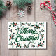 Envía felicitaciones festivas con estilo con nuestra tarjeta de vacaciones Script Merry Christmas Holly Red and Green, perfecta para difundir la alegría navideña a tus seres queridos. Con una hermosa tipografía script y un diseño clásico en rojo y verde, esta tarjeta captura la esencia de una celebración navideña tradicional. El elegante mensaje "Merry Christmas" se complementa con alegres acentos de acebo, lo que le da a la tarjeta un cálido y nostálgico sentimiento.