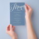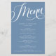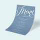 Guión floreciente moderno, menú de papel azul turb