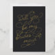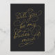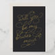Pídele a tus mejores chicas que te acompañen con estas bellas cartas. Caracteres de diseño "serás mi dama de honor" en la tipografía de Relieve metalizado dorado embellecida con un sutil corazón trabajado en el diseño, sobre un suave fondo negro. Añada un mensaje personalizado personalizado a la parte posterior en escritura manuscrita moderna y letras serif clásicas.