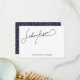 Tarjeta de nota de agradecimiento con puntos de oro falso y azul medianoche con guion bonito simple y moderno.