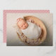 Este anuncio de nacimiento de una foto muestra un elegante guión "hola" junto a un nombre o apodo. También incluye espacio para el nombre del bebé y otros detalles al final de una foto horizontal. El color rosa del respaldo hace que sea perfecto para anunciar a una niña dulce y para coordinarse con fotos de recién nacidos. También hay otros colores disponibles.