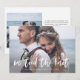 Esta sencilla y moderna tarjeta de anuncio de fuga para la boda presenta una foto personal de la boda en la parte delantera, con las palabras "nos casamos" en escritura informal y blanca a mano. La parte trasera de la tarjeta tiene espacio para otra foto, además de espacio para detallar los pormenores de la fuga o proporcionar detalles para una recepción o celebración posterior a la boda. Un diseño caprichoso y elegante que es la forma perfecta de hacer saber a amigos y familiares que acaban de casarse.
