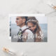 Esta sencilla y moderna tarjeta de anuncio de fuga para la boda presenta una foto personal de la boda en la parte delantera, con las palabras "nos casamos" en una escritura informal y blanca a mano. La parte posterior de la tarjeta tiene espacio para otra foto, además de espacio para detallar los pormenores de la fuga o proporcionar detalles para una recepción o celebración posterior a la boda. Un diseño caprichoso y elegante que es la manera perfecta de hacer saber a amigos y familiares que acaban de casarse.