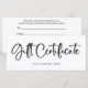 Este elegante y moderno certificado de regalo presenta un fondo blanco sencillo y limpio, con una tipografía de escritura manuscrita negra elegante y moderna.