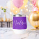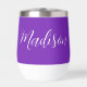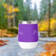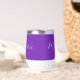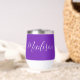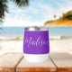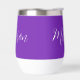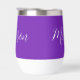 Un vaso de bonito personalizado de monograma morado para un chica o un tipo que ama los regalos simples y escritos a mano. Hermoso guión cursivo en el costado de su botella que explica su nombre en tipografía blanca tipográfica.