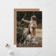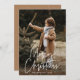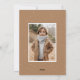 Tarjetas fotográficas de vacaciones modernas con tu foto vertical con "Feliz Navidad" mostrada en un guión escrito a mano en blanco. Personalice la tarjeta de Navidades de fotos con su apellido y el año. La tarjeta fotográfica única se invierte para mostrar una foto adicional y un fondo marrón caramelo con puntos blancos sutiles.