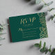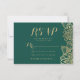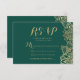 Un moderno y elegante guion manuscrito de letras verde oscuro y dorado pintado a mano tema floral mandala boda Tarjetas de respuesta invitaciones.
