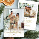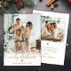 Minimalista Elegante Gold Script 2 Fotos Tarjeta navideña navideña de escritura. Esta plantilla festiva, moderna y simple, con dos (2) fotos de tarjetas de felicitación navideña que presentan el texto "Feliz Navidad" en una caprichosa letra a mano con brillantes letras de tipo de letra de giro giratorio suave caligrafía guión de escritura de oro fotografía de color. En la parte posterior con la plantilla de mensaje de bienvenida con un pequeño doodle cardíaco y una plantilla de foto. Tarjeta de saludo de bonito para su familia y amigos en temporada de vacaciones para Navidades.