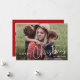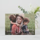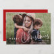 Una moderna tarjeta navideña con escritura de flor Merry Christmas, simple tarjeta de vacaciones con letra manuscrita, foto de retrato de sangre completa en el frente con nombres familiares e individuales. La parte de atrás tiene una segunda foto con un sentido mensaje de feriado de la familia. Haga clic en el botón de edición para personalizar de este diseño.
