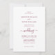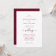 Elegantes y minimalistas invitaciones de bodas burdeos con un guión moderno. Personaliza fácilmente en línea. Artículos coincidentes disponibles para complementar esta invitación de boda moderna.