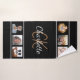 Haz tu propio collage de fotos de familia. ¡Usa seis, seis de tus fotos favoritas de tus hijos, familia, amigos o mascota! Un fondo negro clásico. Personalice y agregue su nombre y sus iniciales de monograma. El nombre está escrito con un gran guión moderno de estilo con letras a mano. Letras blancas y doradas.