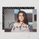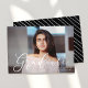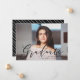 Anuncie el logro especial de su graduado con nuestros anuncios de graduación de Guión Momentoso. Los elegantes anuncios de graduación incluyen un moderno tipo de letra de caligrafía que sobrepone la foto preferida del graduado. Personalice los modernos anuncios de graduación con el nombre del graduado, el nombre de la escuela y el año de graduación. El lado inverso de la invitación presenta un fondo diagonal rayado a mano en negro.