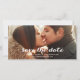 Guardar nuestra fecha | Guión moderno Guardar la tarjeta fotográfica de fecha. Diseño de Elke Clarke© Negrita, simple y moderna sobreimpresión de texto de escritura blanca. Personalizable completo si selecciona "personalizar". Reemplace la foto de ejemplo mostrada con su propia foto de compromiso. Hay otros colores disponibles.