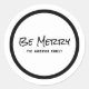 Pegatinas modernos y modernos de escritura simple Be Merry Holiday con un diseño de texto negro con las palabras "Be Merry" en un guión escrito a mano en negrita. Estos elegantes pegatinas de diseño de tipografía se pueden personalizar fácilmente con el nombre de su familia u otro texto. Para obtener más opciones de personalización, haga clic en Personalizar.