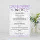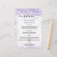 Un fondo blanco. Decorado con purpurina falso de color violeta y lavanda. Personalice y añada sus nombres y el menú de la cena boda.