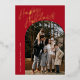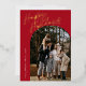 La tarjeta navideña de Relieve metalizado fotográfico Red Modern Happy Holidays Arch 2 incluye un guión divertido y moderno en una foto abovedada, junto con una segunda foto en la parte trasera y un cuarto para el mensaje.