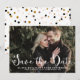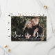 Anuncio de guardar la fecha caprichoso y elegante con un guion de caligrafía moderna blanca y un patrón de lunares coloridos. Están disponibles artículos similares y otros colores.