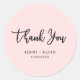 Diseñado para coordinar con nuestra colección de bodas Purpurinas rosados y dorados, este personalizable de agradecimiento pegatina presenta un guión de agradecimiento al tipo de letra sobre fondo rosado.