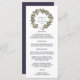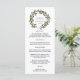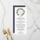 Nuestro menú de boda elegante presenta sus platos de entrada, platos principales y postres en letra elegante, con sus nombres rodeados por una guirnalda botánica verde de hojas y bayas de invierno en acuarela. Coordina con nuestra colección de boda Blueberry.